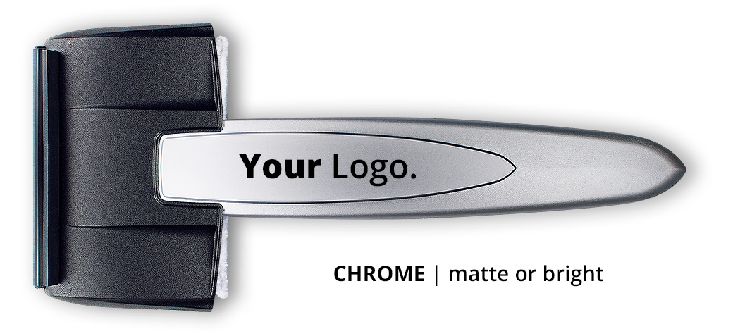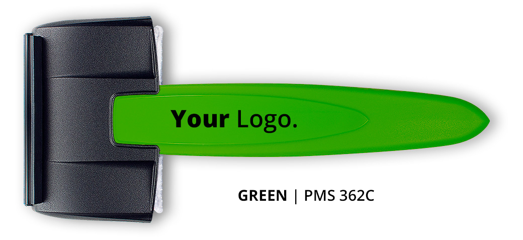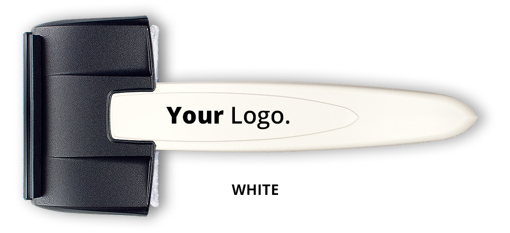 VISTA CarWindowCleaner‘s extra large print surface is perfect for your promotional imprint. Since the logo is on the front and one holds the device on the back, the cleaning device is visible at all times, even when it is in use.